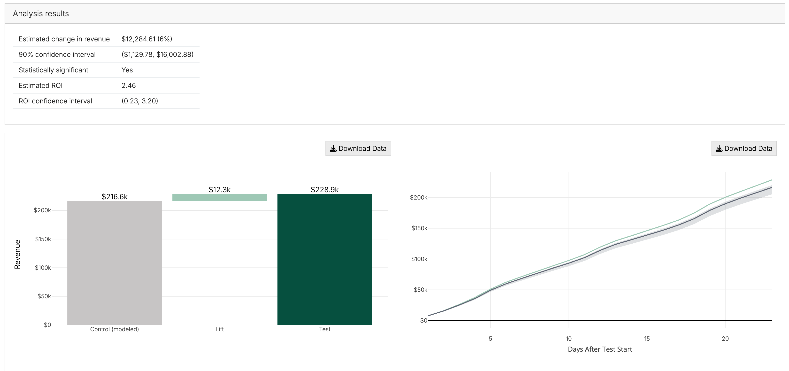 Once you have conducted a geographic experiment you can upload the results of your experiment and use the Analyze tool to estimate the incrementality of the channel you experimented with.